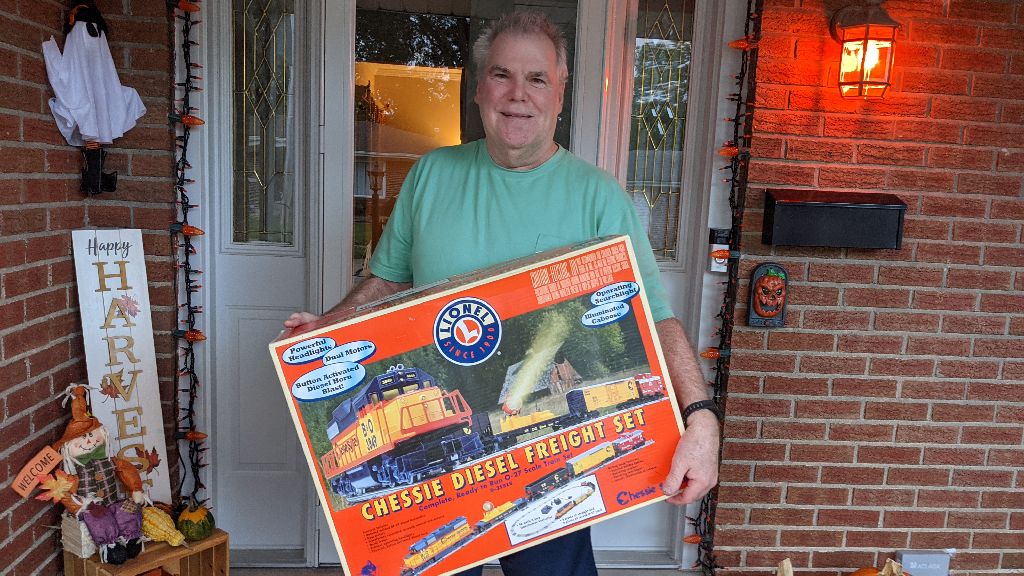 Pictured here is the winner of the Grand Prize drawing at the 2021 30th Anniversary Greater St. Louis Metro Area Train Show held at the Kirkwood Community Center. Jim Wingbermueblo anticipates that his grandchildren will be more than willing to help him enjoy the train set! Jim has been to the MVNS Kirkwood show in previous years and looks forward to next year's show. Congratulations!